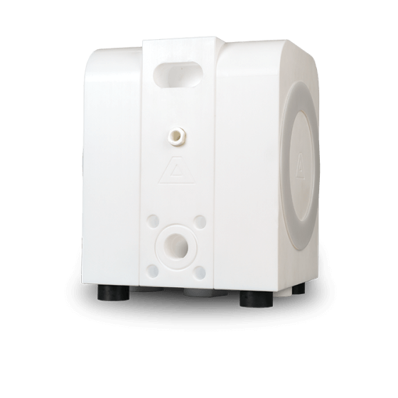 AODD气动隔膜泵基于隔膜泵的设计原理,其结构包含两个侧壳体和一个中间壳体。每个侧壳体中都有一个流体腔,并通过隔膜与中间壳隔开。两片隔膜通过活塞杆连接,并在空气控制系统的作用下交替受压,形成往复运动。当压缩空气推动左侧隔膜向流体腔移动时,液体被推过打开的球阀, 从顶部出口排出。同时,右侧隔膜吸入液体,填满第二个流体腔。当冲程到达末端时,自动反向操作开始,左侧隔膜吸入液体,而右侧隔膜排出液体。这样,液体在压缩空气的驱动下被连续输送。隔膜仅起到密封效果,不承受直接压力,这一设计延长了隔膜的使用寿命。