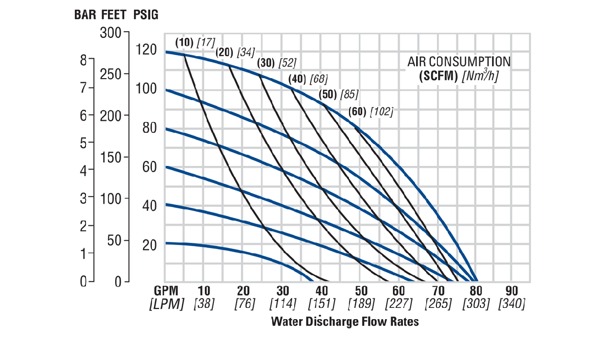 注意: 其他性能曲线可以参阅P4金属泵安装手册。